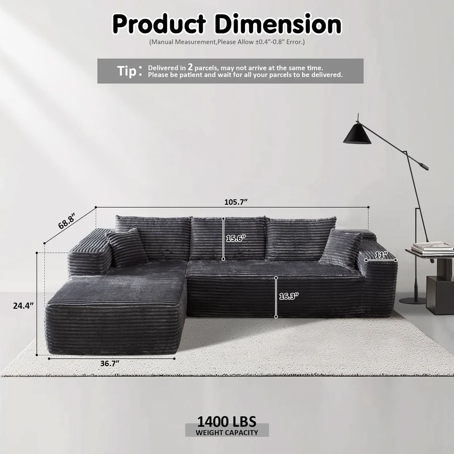 No Assembly Required:Escape the typical furniture setup hassle with our modular cloud lounge. Simply unbox all parts and lightly tap each segment to boost its springiness and poof, bringing it back to its photogenic glory. Complete revival may take up to around 72 hours. Delight in the ease of a no-assembly nirvana!