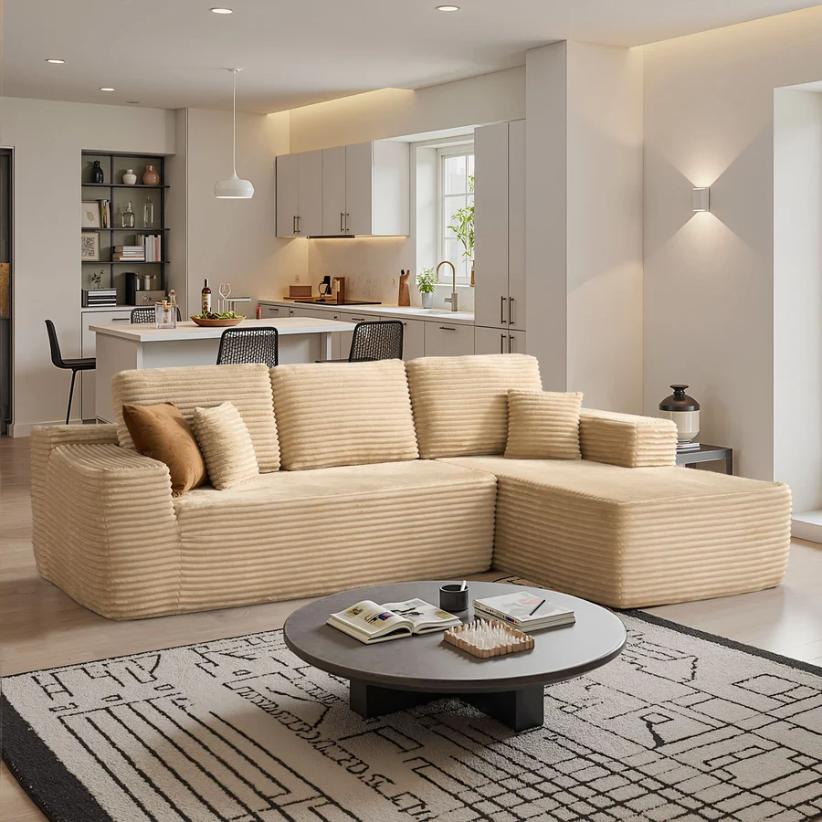 Plush Corduroy Fabric:Wrapped in soft-touch Plush Corduroy Fabric, this sofa brings a cozy, inviting texture to your living space. The material is not just comfortable—it’s also stain-resistant and durable, making it a smart choice for families, pet owners, or anyone who actually uses their furniture every day.
